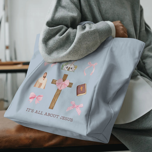 🕊️ It's All About Jesus Tote Bag (Blue)