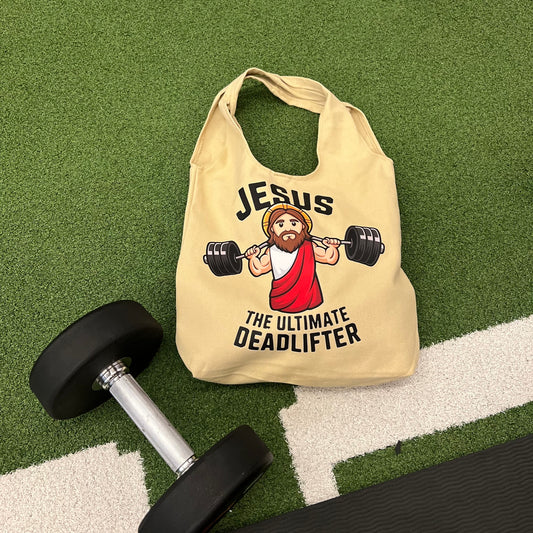 💪 Jesus the Ultimate Deadlifter Tote Bag (Beige)